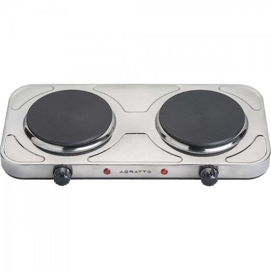 Esse fogão elétrico apresenta um corpo em aço inoxidável, garantindo maior resistência e facilidade na hora da limpeza. Ele possui dois pratos de aquecimento feitos em ferro fundido, que aquecem rapidamente e mantêm a temperatura estável durante o preparo das suas receitas.